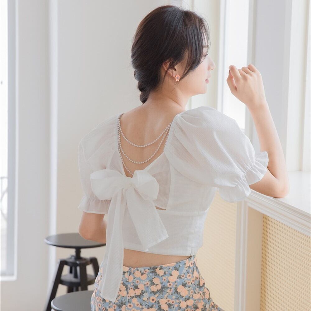 バックリボンパフスリーブブラウス 200041