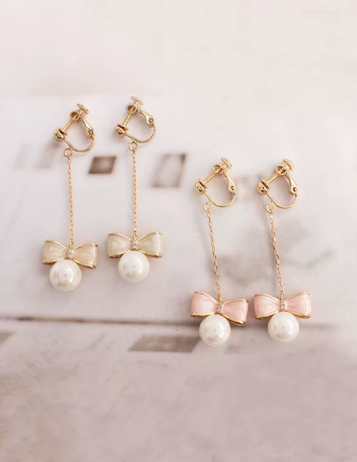 パールリボンピアス イヤリング 400023