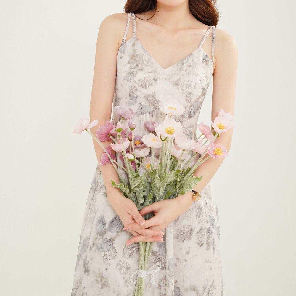 水彩花柄シフォンキャミワンピース 100073