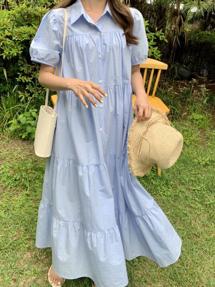 ロング丈ティアードシャツワンピース 100092