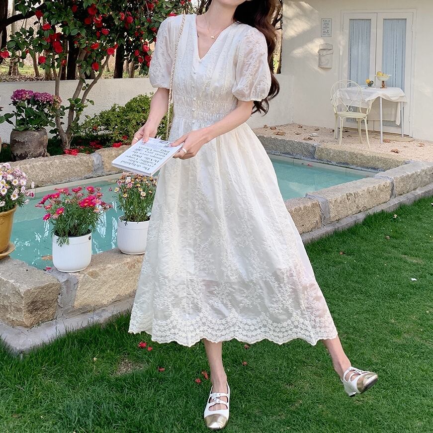 ホワイトレースエレガントワンピース 2405200