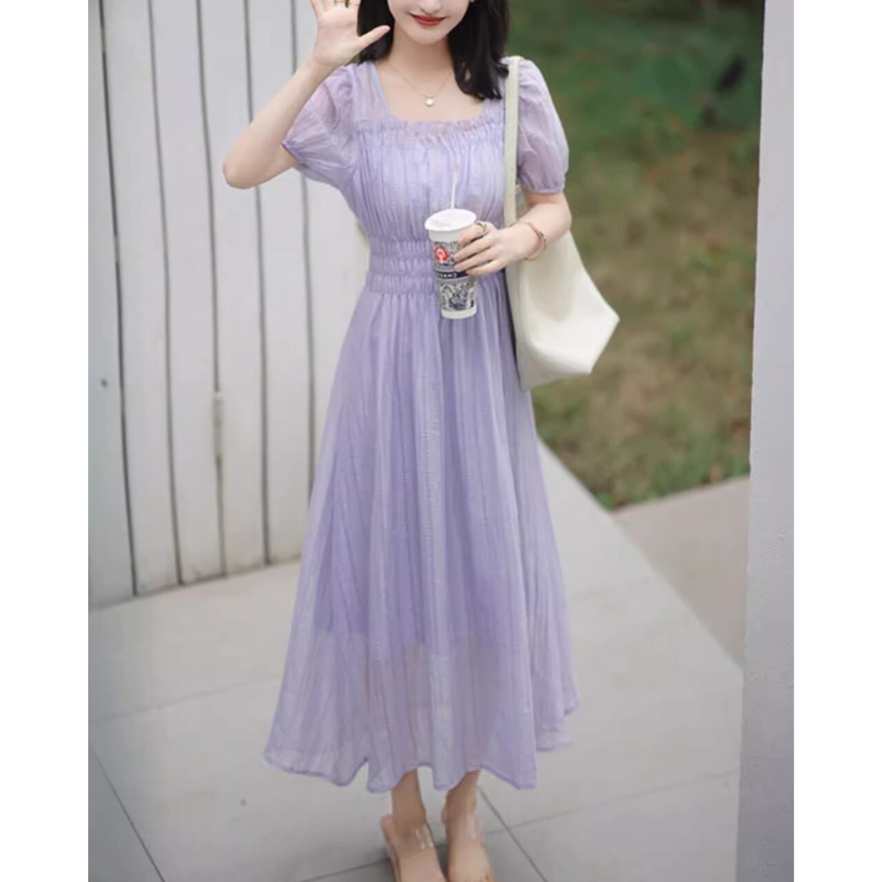 スクエアネックが特徴的なパープルシフォンワンピースは、優雅な雰囲気漂う一着です。柔らかなシフォン素材が肌に優しく、女性らしいシルエットを作り出します。特に春や夏の季節にぴったりで、さまざまなシーンで活躍します。