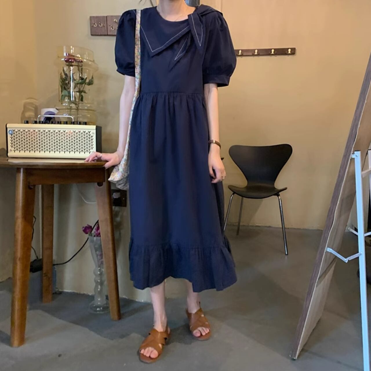 ネイビーレトロフリルワンピース 2405222