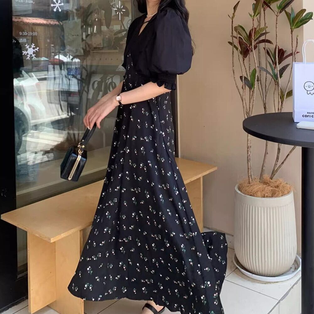 ハイウエスト切替小花柄ロングワンピース 2405218