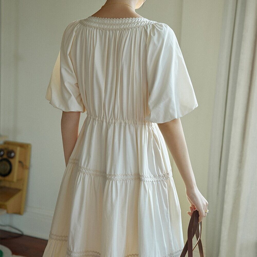 バルーン袖ナチュラルティアードロングワンピース 240613